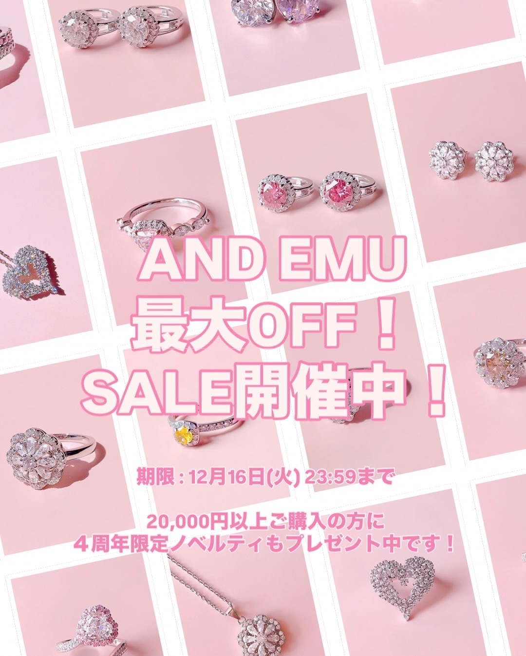 この20%OFF SALEが、今後AND EMUで行う最大の割引率となります。今後AND EMUでは、これ以上のOFFを行う予定はございません。このチャンスを逃さず、お得な期間にぜひ、AND EMUでのお買い物をお楽しみくださいませ♥