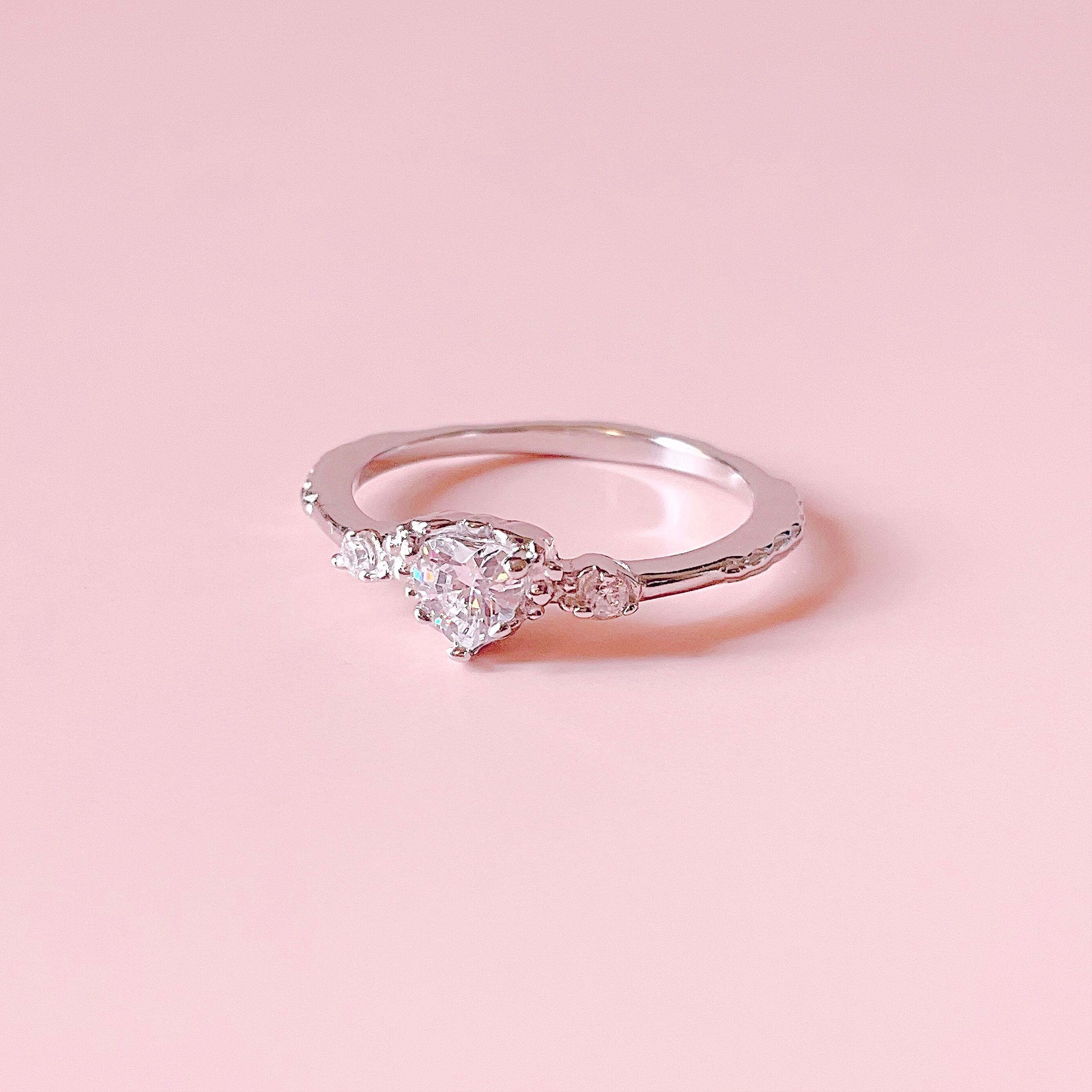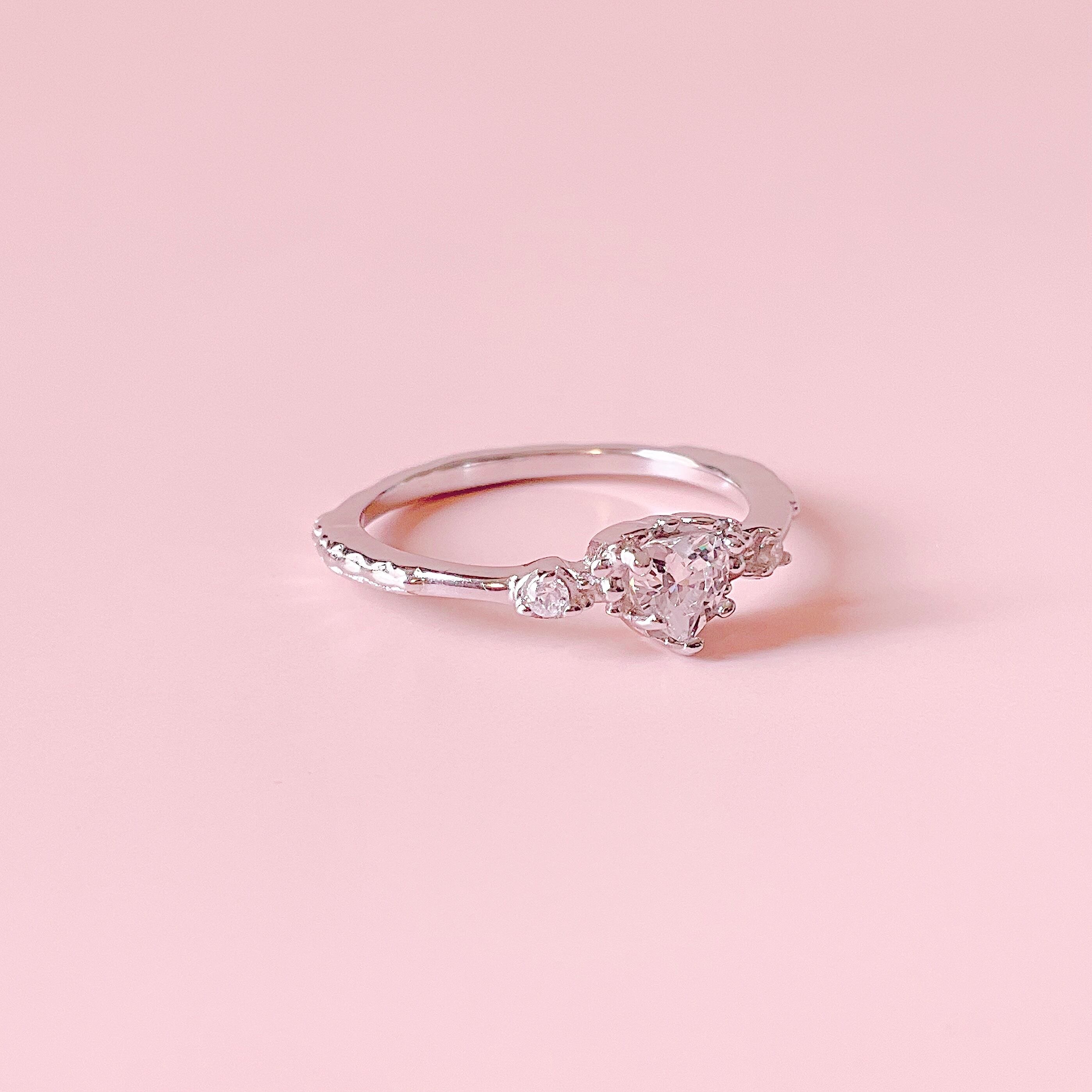 澄んだ輝きを放つ小さめの Heart shape Labo Sapphire と、その周囲にきらめく繊細なストーンが、指先にきゅんとときめくような愛らしさを添えてくれます♡