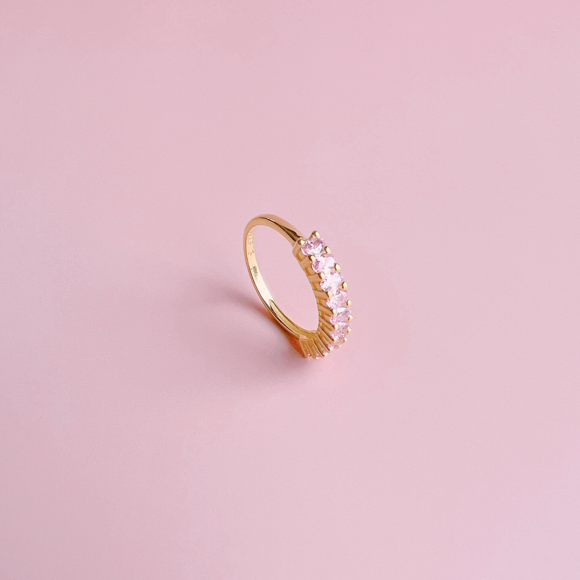 ピンクのAAAAA級のキュービックジルコニアを使用したハーフエタニティリング♡
