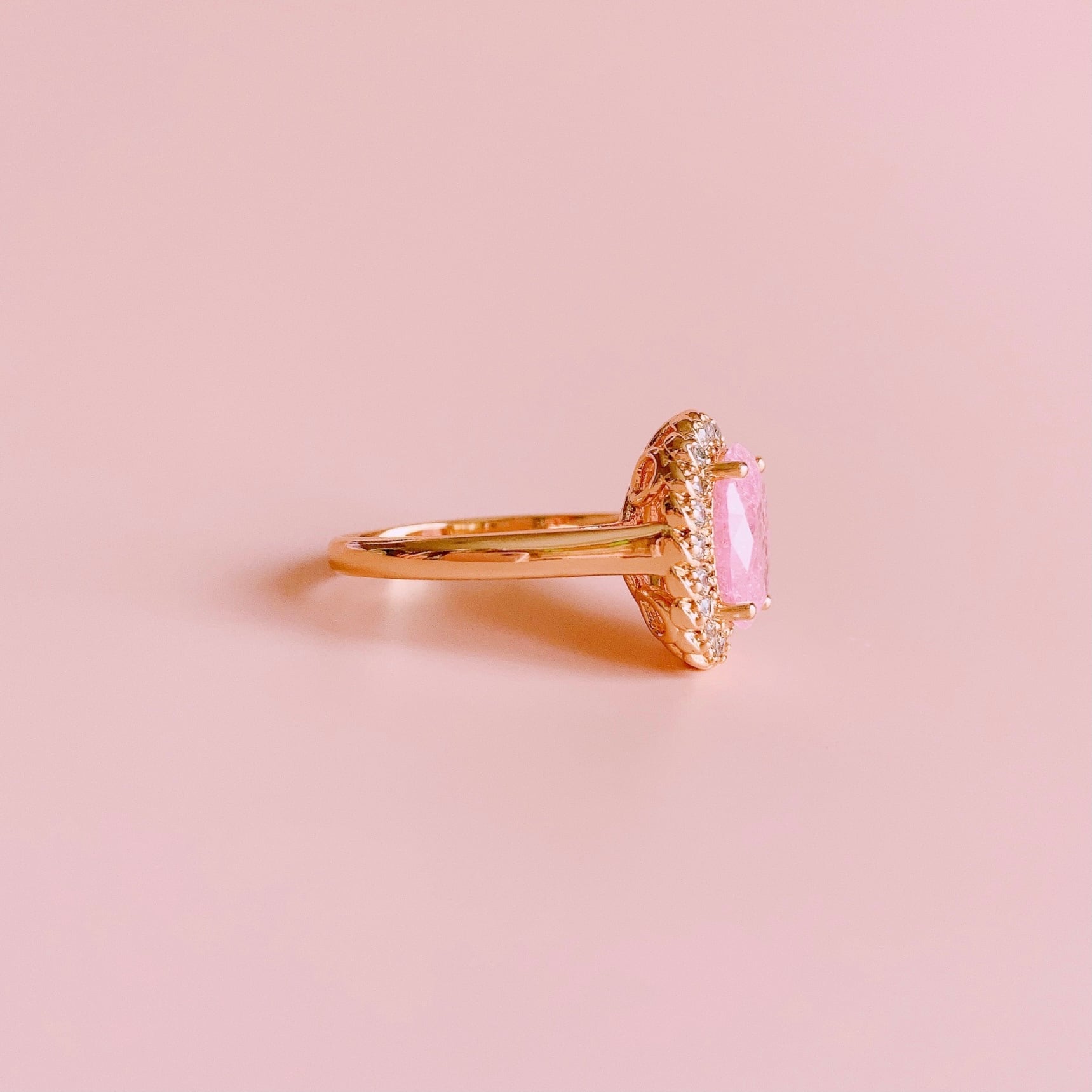 真ん中のストーンは、ゴールドは少し濃いめのピンクストーン、シルバーは淡いピンクストーンになります。