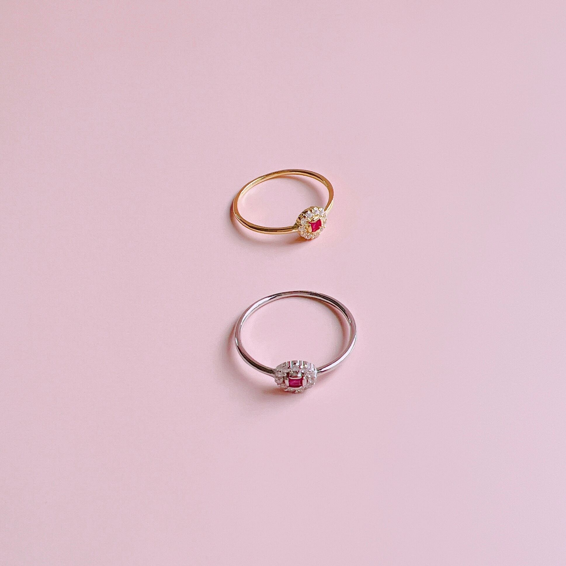 中央のマゼンタピンクのストーンが女性らしく華やかに輝きます。