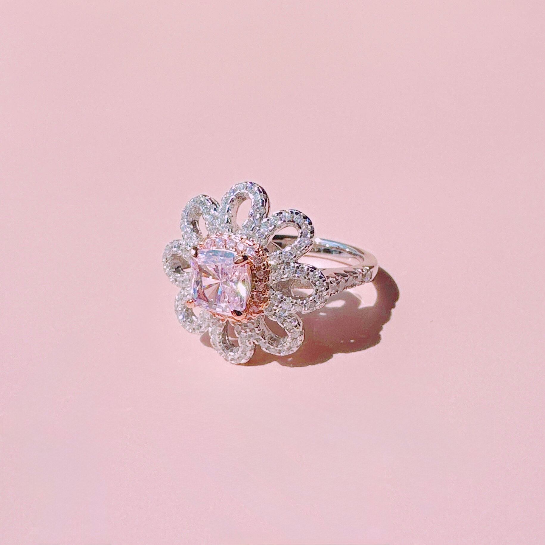 メインストーンに淡いピンクサファイアを使用したキラキラなお花リング♡