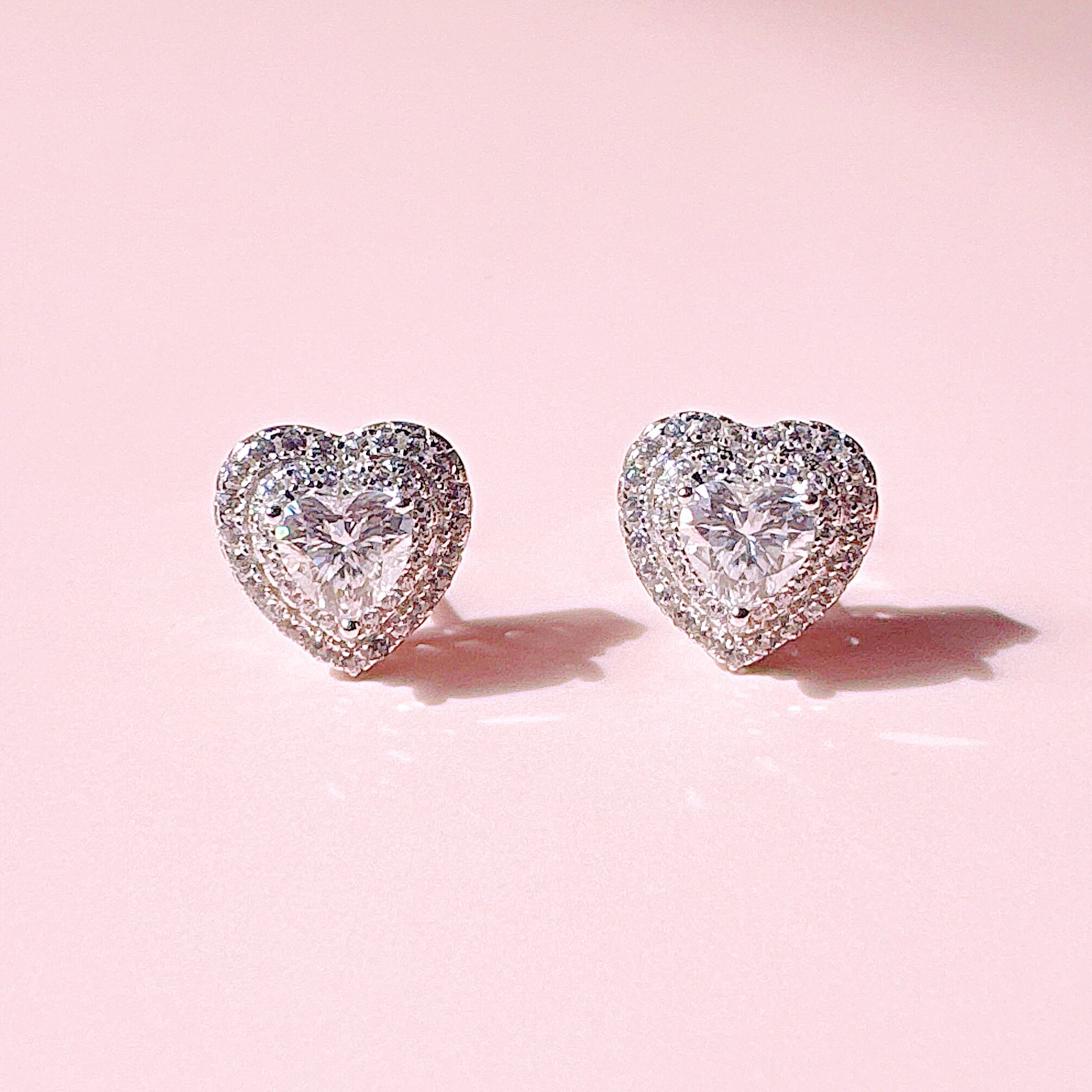 最上classのDカラーのモアサナイトのみを贅沢に使用し、メインストーンにはブリリアンカットをした1ct.のハート型モアサナイトのストーンが両耳にキラキラと輝きます♡